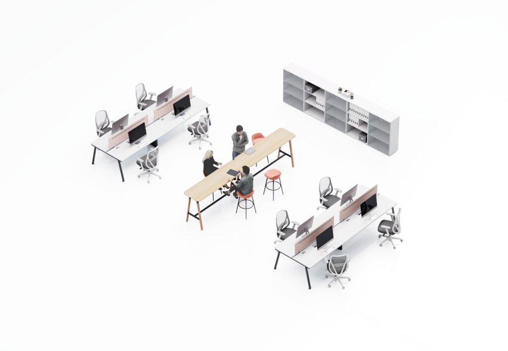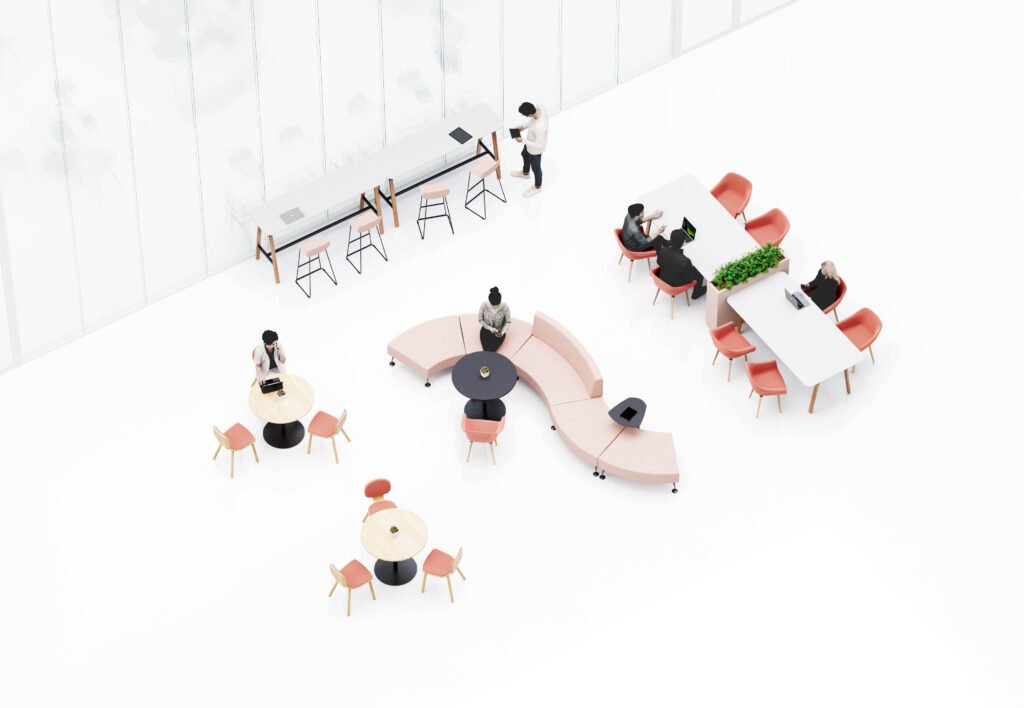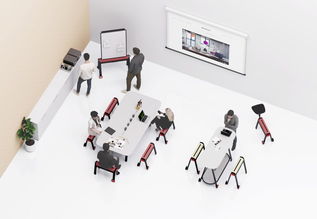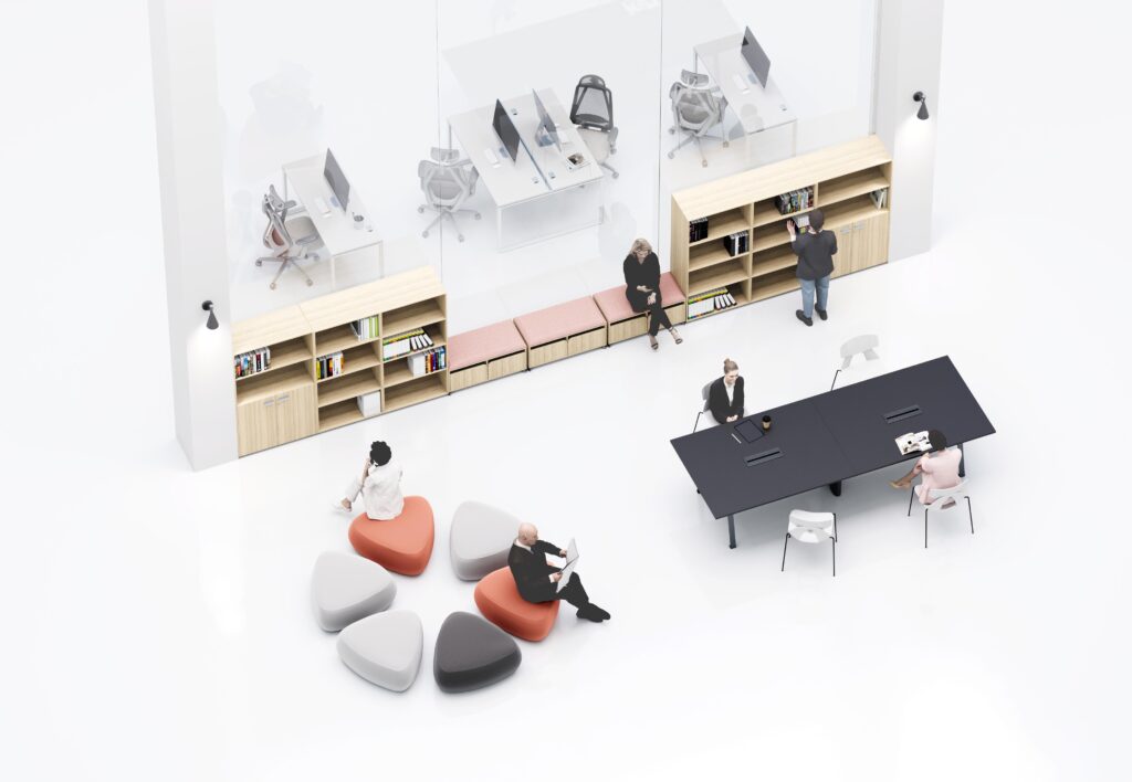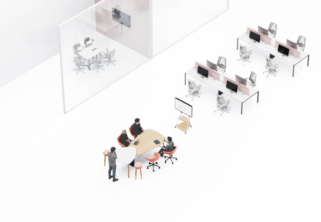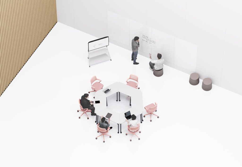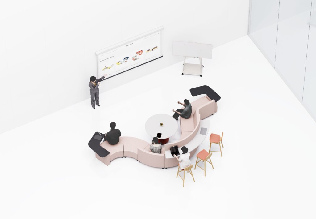 - A suitable space for employees or mobile workers to work temporarily, allowing easy reconfiguration for dynamic teamwork
