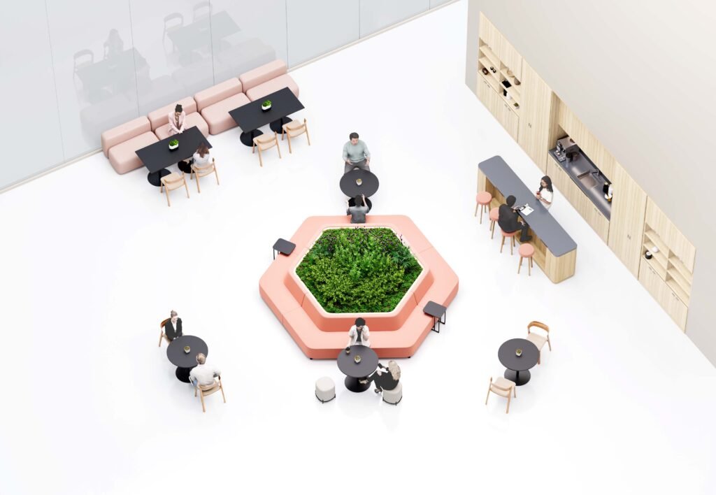 - A dynamic and energizing hub where people connect, recharge, and collaborate. It blends comfort, functionality, and social interaction-fueling both productivity and a sense of community throughout the day