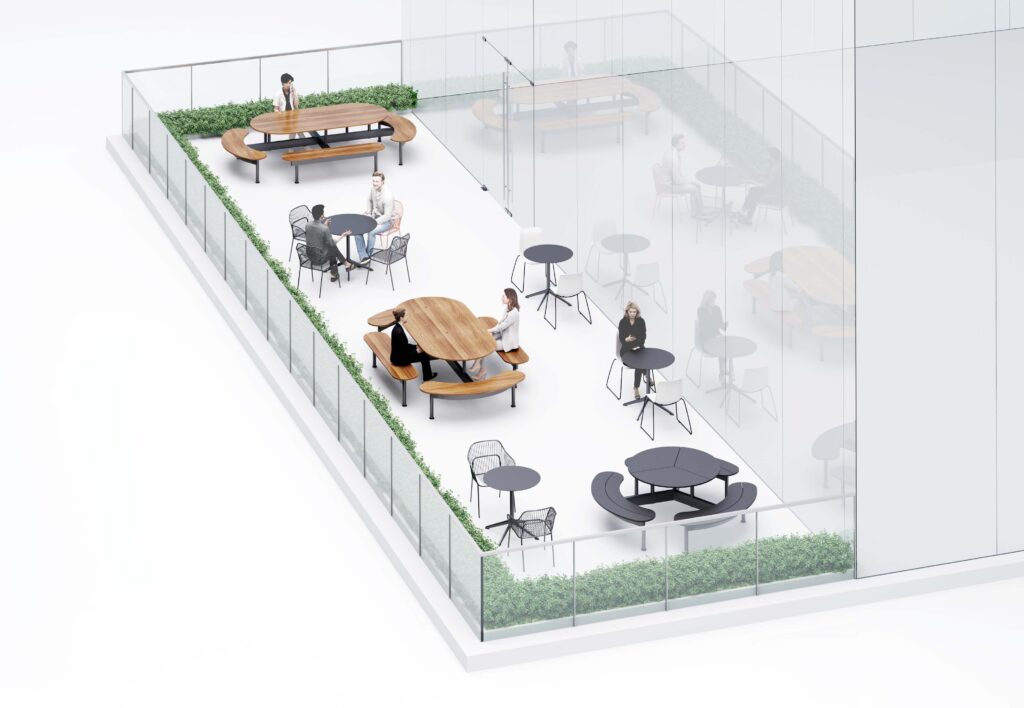 - A shared space for all employees to relax, chat, and recharge in a natural, open-air setting