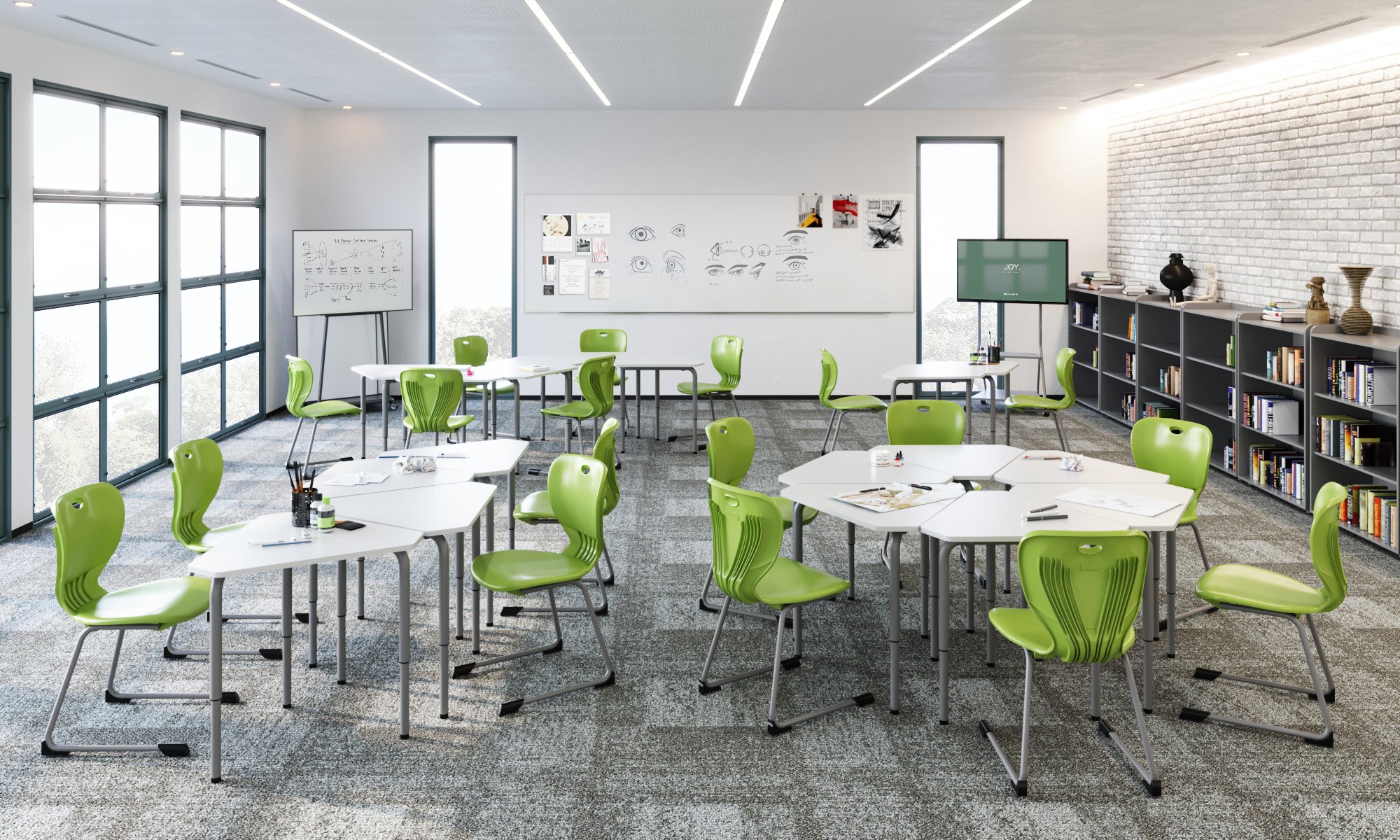 Diamond Shape – multi-functional design allows for dynamic seating arrangements and group interaction in various configurations, such as circular groupings, pods, or rows, catering to different teaching and learn approaches.