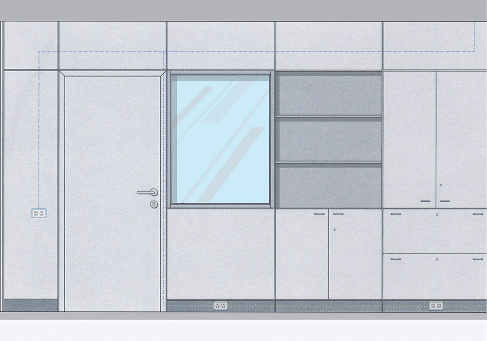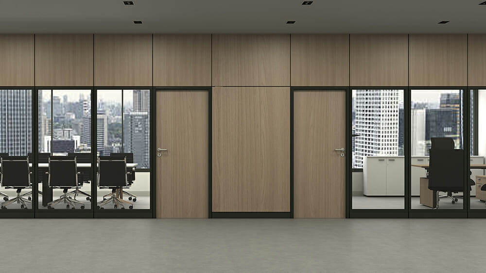The modular construction and co- ordinated finishes of FLEX, facilities the suiting of all interior walls including, structural / masonry cladding, solid and glazed partitions, door, single and double sided storage walls. All frames and panels are factory finished allowing fast, simple installation and reconfiguration.