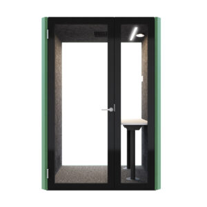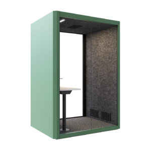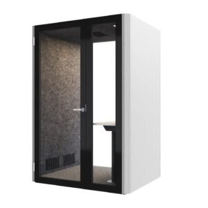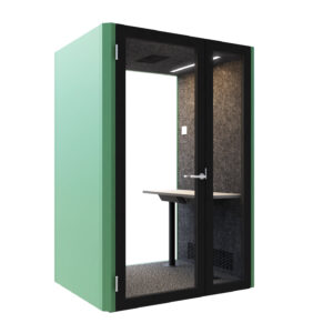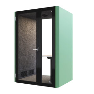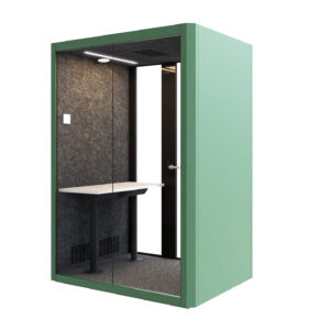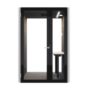 When you need to work in absolute focus and privacy, the WorkBOX is perfect. It seats one person comfortably, and is soundproofed for absolute quiet, making it also perfect for phone and video calls. With its glass walls all around to allow daylight into the booth, it creates a great and cosy working environment.