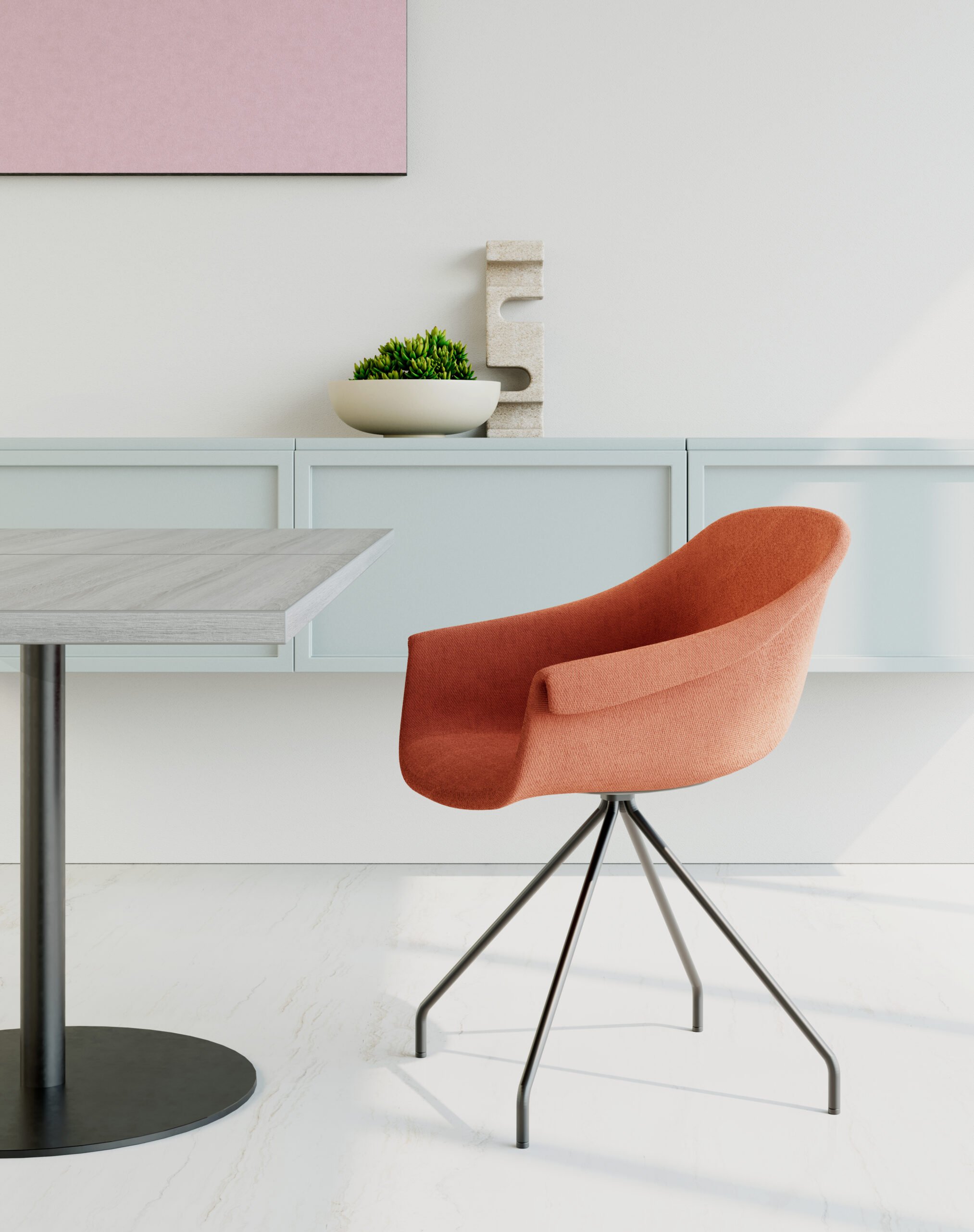 The upholstered chair emphasizes the main concept of the design and is a beautiful illustration of how Genie’s strong design language and increased comfort. Luxurious upholstered the expression and add warmth, while the specially developed mounting solution also gets a new appearance, taking the look in new directions.