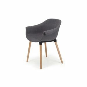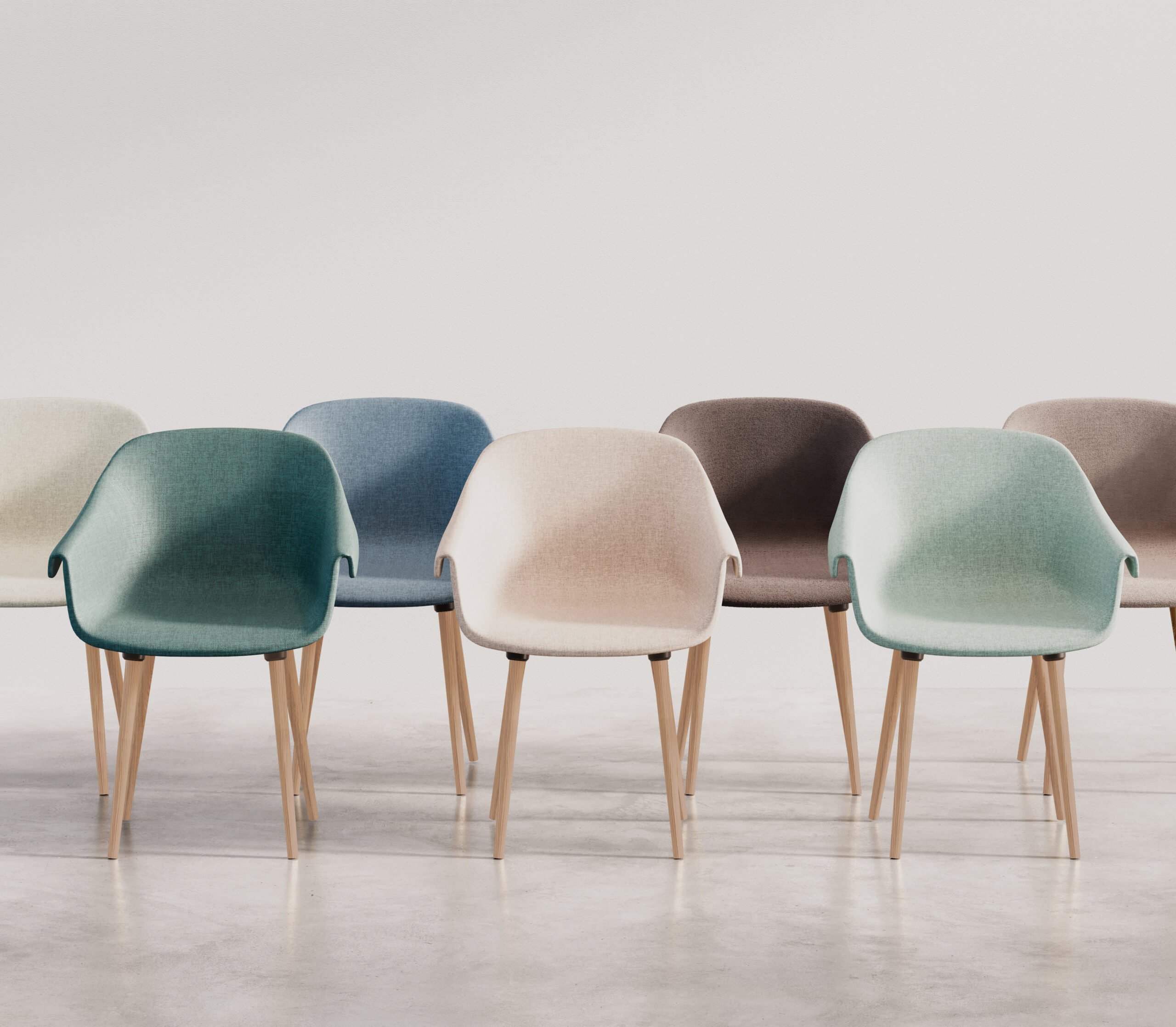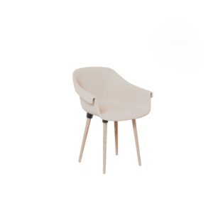 GENIE, the shell with a beautiful design with continuous free flowing curves of armrest. The one-piece seat shell flexes gently for added comfort and optional fully upholstered in your specified fabric and matching with wooden 4 leg. Read More