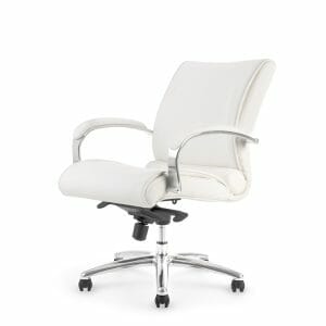 The structure is made of aluminum alloy. The 360-swivel- chair comes with a synchronized knee-tilt system and 5-step locking in order to support several sitting styles and increase relaxation while working. The chair base is designed with triangle shape for gauzy looking which matches the shape of the cushion, not bulky.