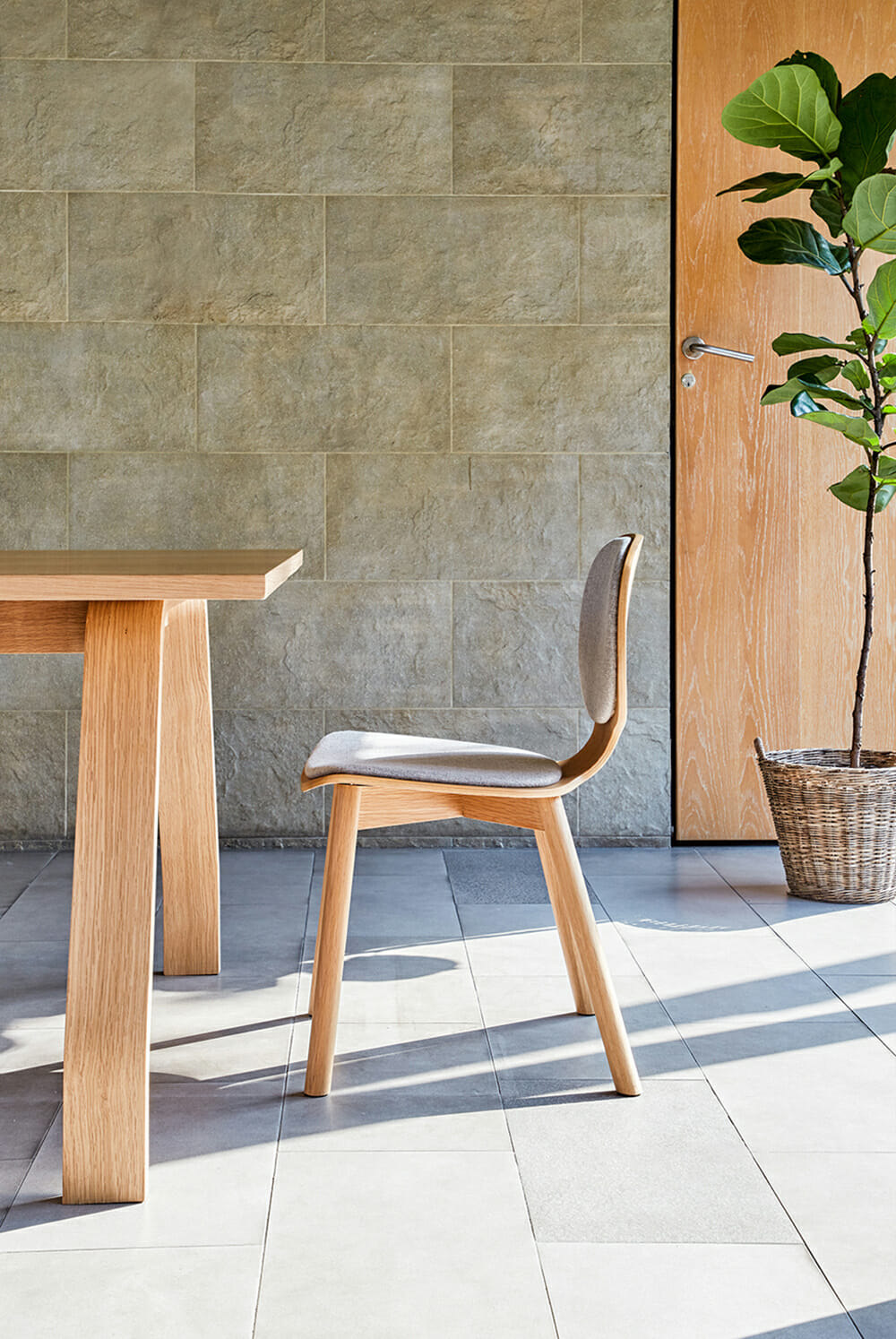 KORKOD is timeless chair with its simple and smooth shape. KORKOD characterized by curved lines and bent solid wood between seat and backrest with cushion support for superior comfort. It provides beautiful for cafeteria, work space, or collaborative area.