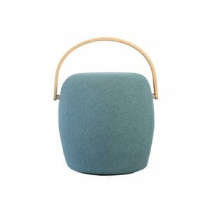 KRATIK, the rounded, fabric-covered form has a rotating wooden handle that lets you easily transport it from space to space. Slip the handle to the side when it’s time to sit.