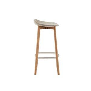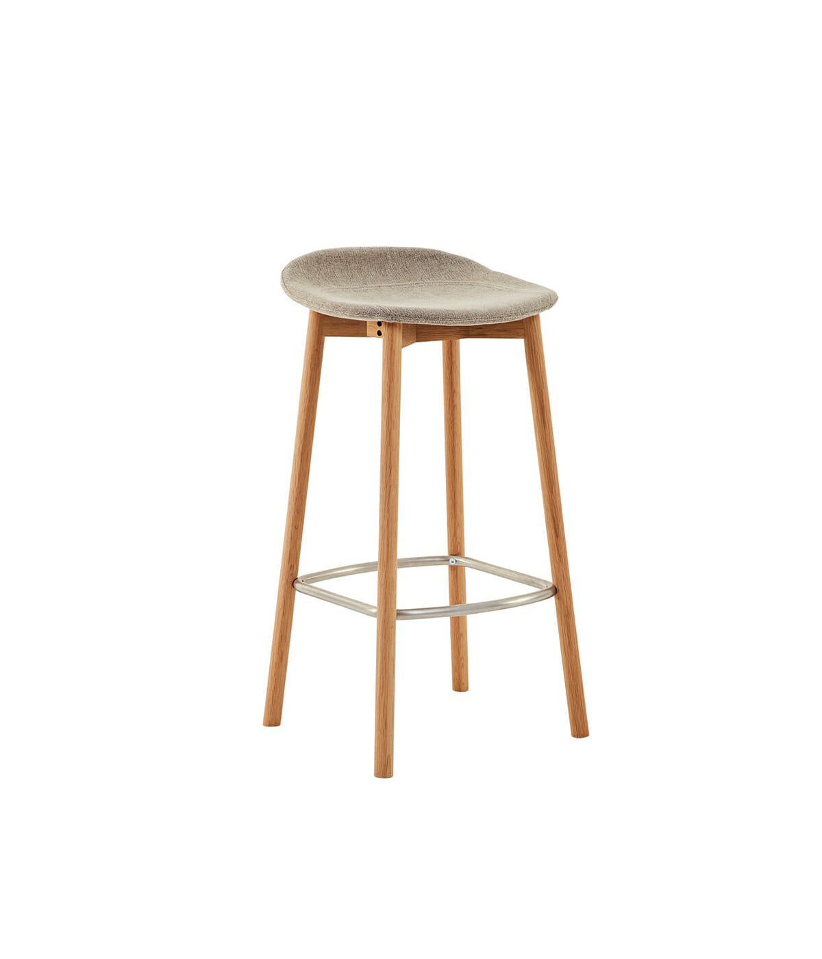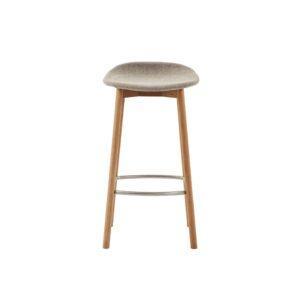 PRIMO, four wooden legs stool is available in 3 heights, low, medium, high stools. Legs can choose in Oak, Ash or Beech of solid wood finishes and the seat can be upholstered in wide range of our selection.