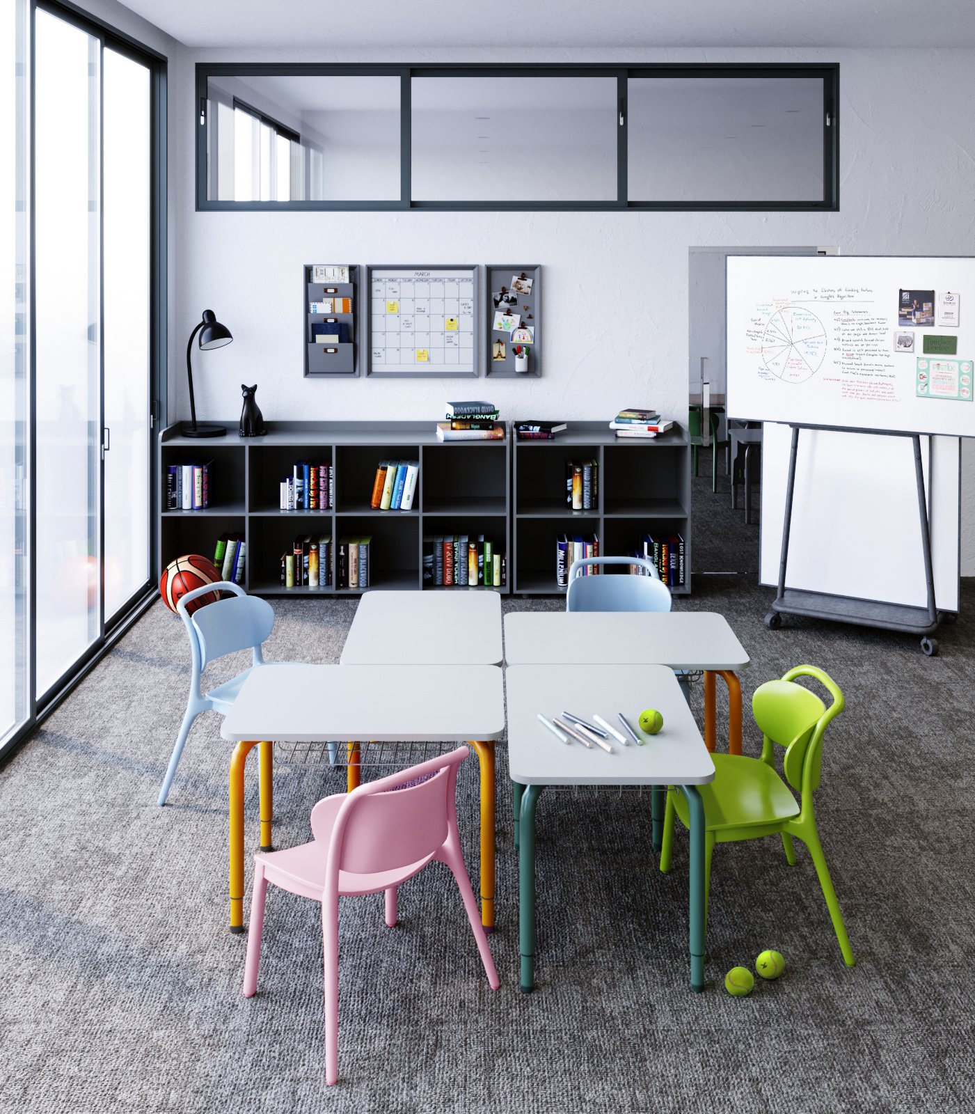 Integrated Storage – built-in under-desk storage allow student to keep their belonging