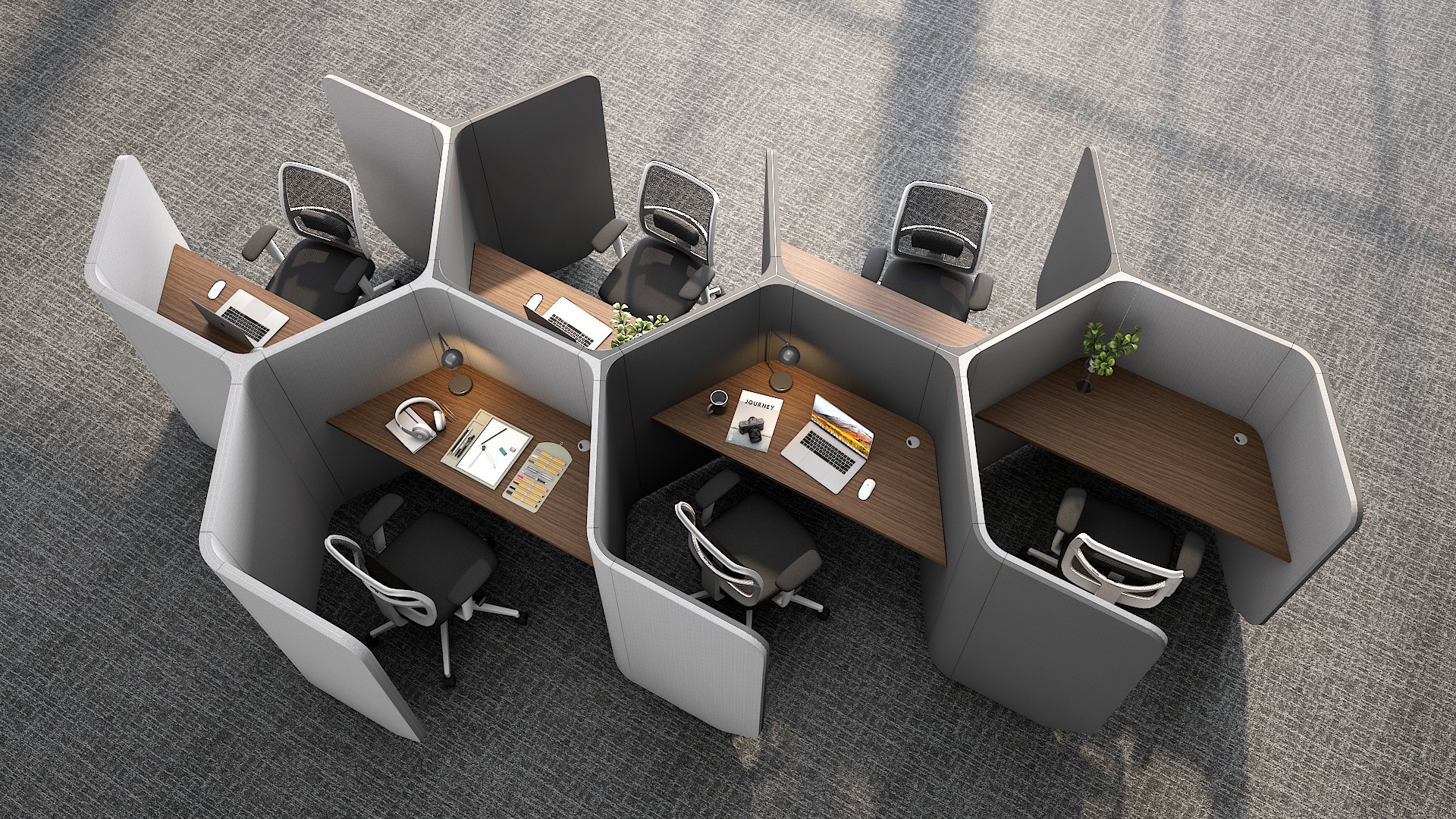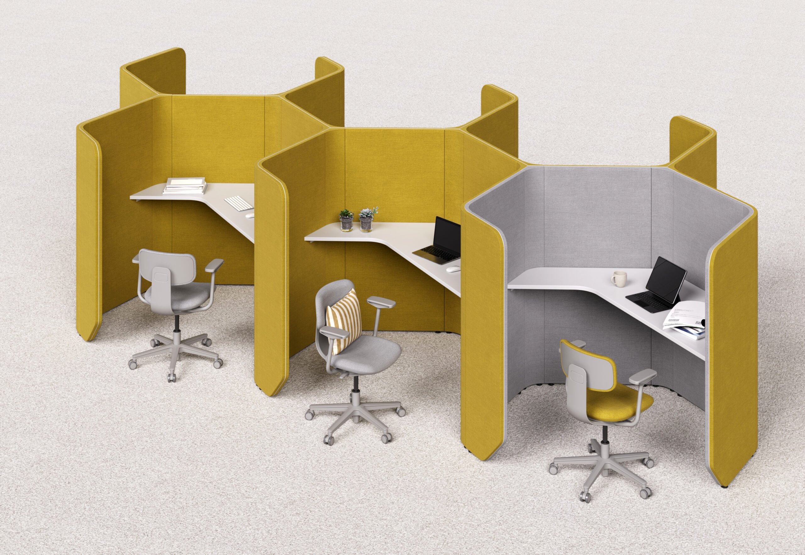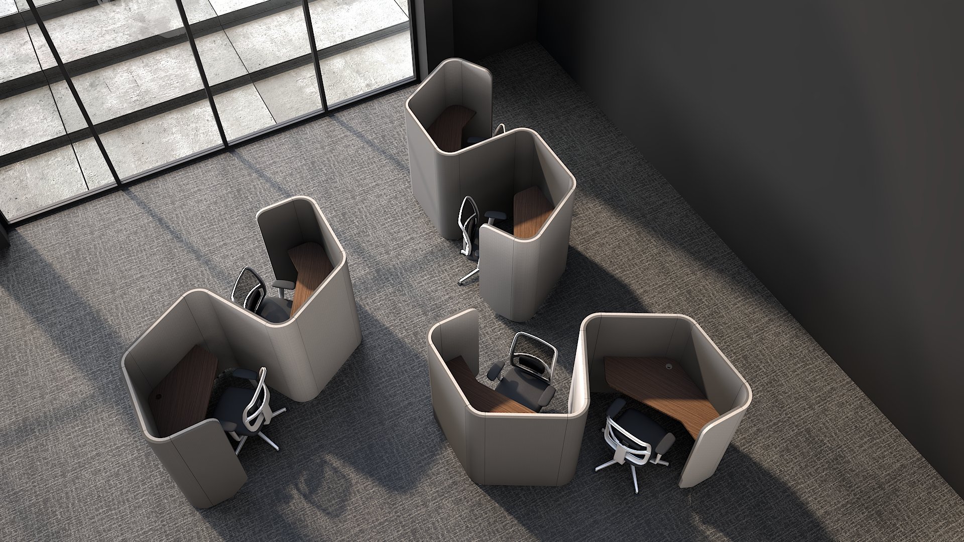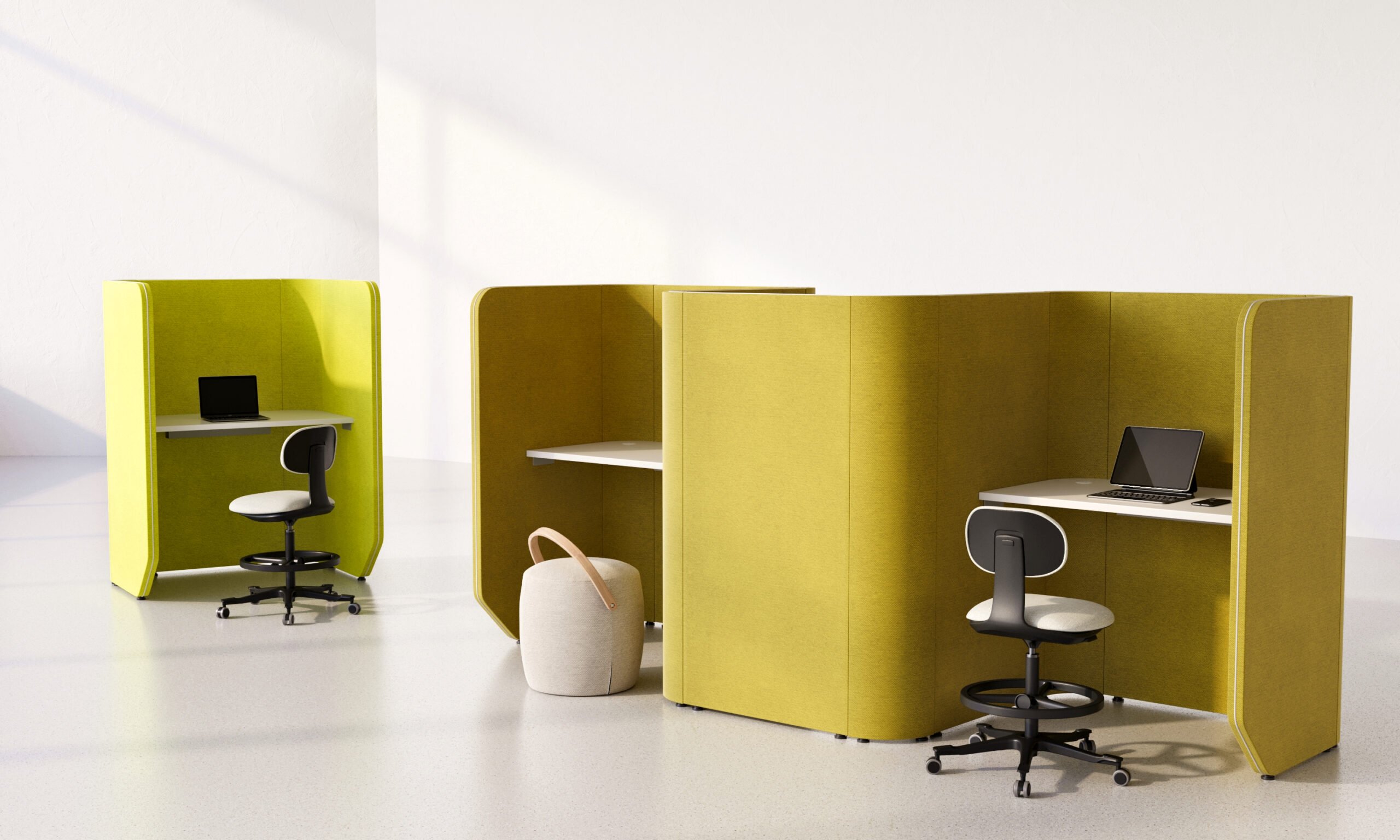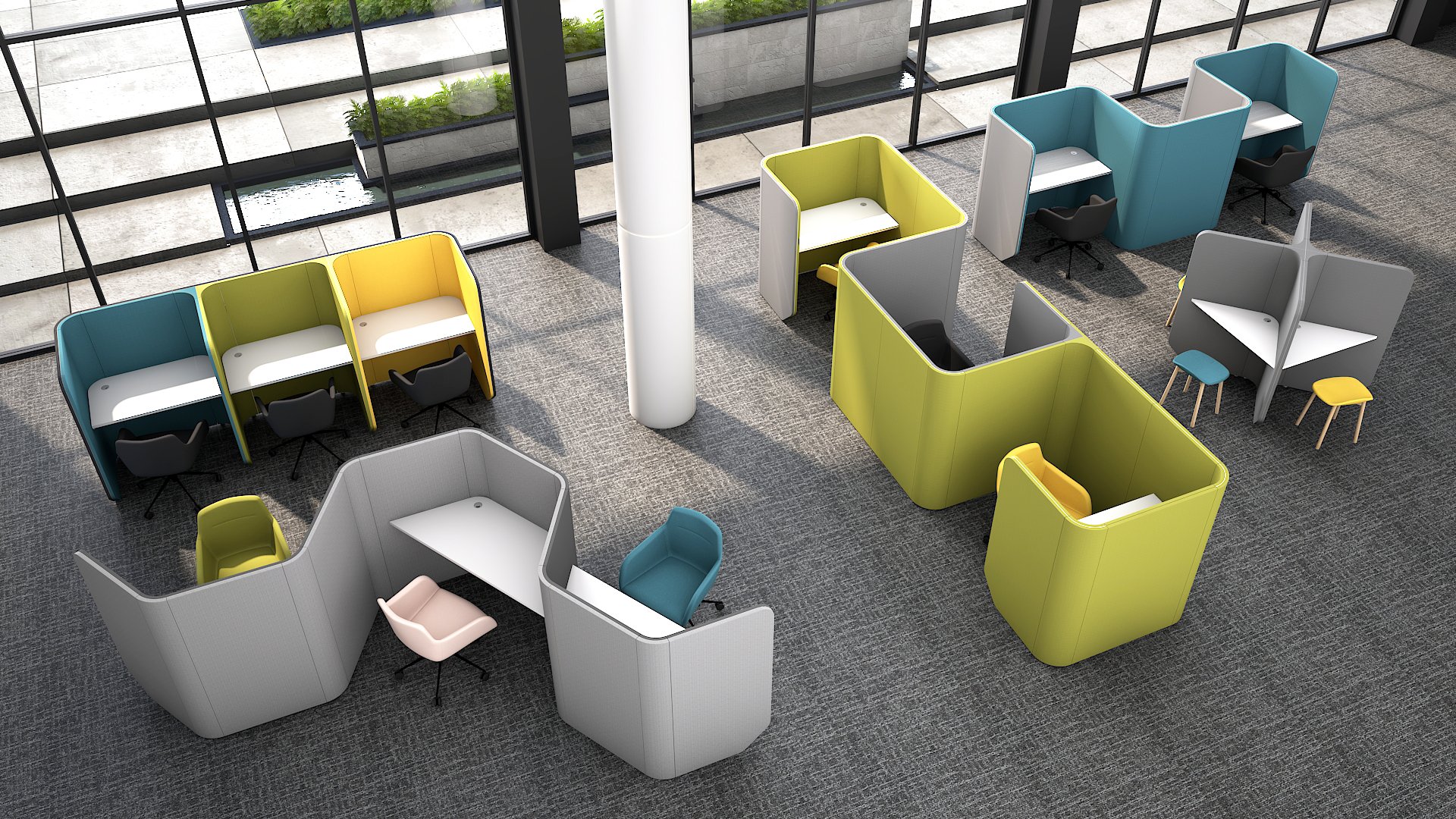 Acoustic solution for open plan, WE+THINK is a range of acoustic work areas created to make public spaces private. In any open plan work area there are times when you need to find your own space.