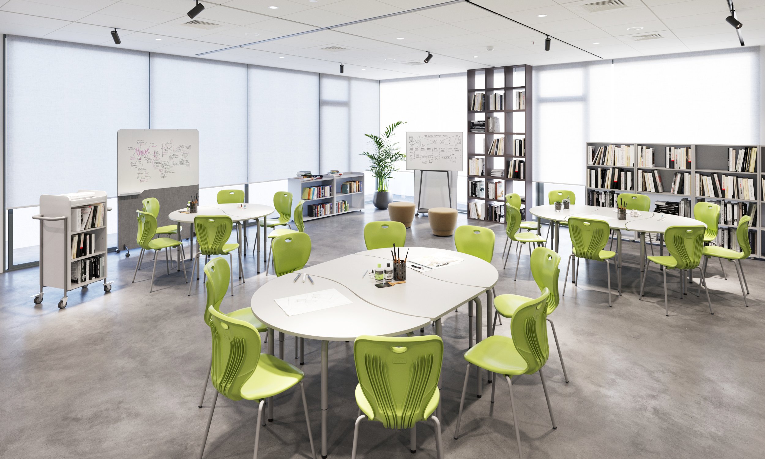 Yin-yang activity table designed for collaborative learning. Robust, good looking and functional, our JOY table designed for maximum flexibility and multi-modal applications allowing you to swap and change you table configurations to suit your evolving learning environment.